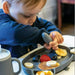 - The chunky, rounded handles make picking up and gripping super easy for even the tiniest hands