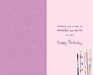 This sophisticated card from ICG features soft pink tones with a beautiful image of lit birthday candles inviting a heartfelt “make a wish.” Its elegant design offers a refined and warm way to celebrate a girl’s special day.