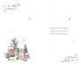Celebrate a new home with a sophisticated card featuring delicate illustrations of a kettle, a painted flower pot, and new keys. This elegant design captures the warmth and promise of fresh beginnings, making it an ideal way to convey your heartfelt congratulations.