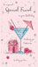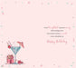 Celebrate your friend’s birthday with this sophisticated card featuring soft pink tones and an elegant design of a cocktail glass alongside a beautifully wrapped present. The refined imagery conveys joy and celebration, making it a perfect choice to send your warmest wishes with style and grace.
