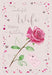 Celebrate your wife’s birthday with a beautifully designed card featuring a vibrant red rose set against gentle pink pastel tones. The heartfelt message complements the elegant design, offering a perfect expression of love and appreciation on her special day.