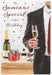Celebrate someone special’s birthday with this refined card featuring a stylish illustration of a man standing with a wine glass in front of presents. The sophisticated design captures a moment of celebration and elegance, making it a perfect way to convey your warmest wishes with grace.