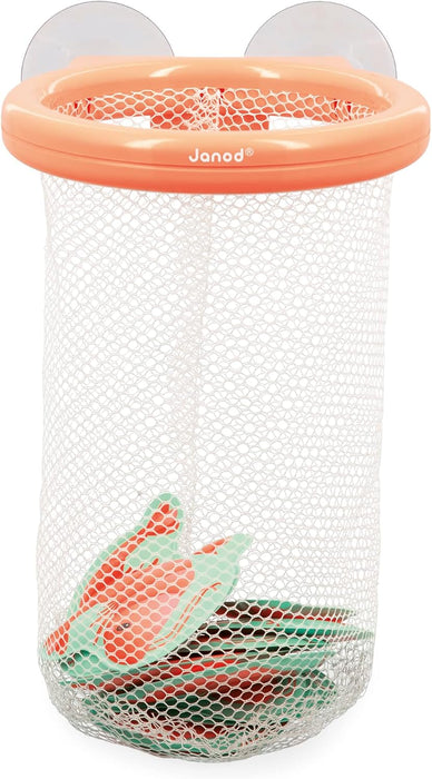 Dive into playful fun with our Janod BATH TOY! With the included pliers, your child can catch and collect the 12 floating shrimp in the fabric basket. Perfect for developing dexterity and motor skills, and the fabric basket easily attaches to the tub with suction cups.