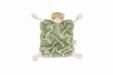 - This bear is a super-soft cuddle toy. It's a timeless and delicate 24cm flat cuddle toy, ideal for newborns from the moment they arrive. The soft, fluffy body of this flannel-fur cuddle toy will delight babies and ensure they won't stop cuddling it. This square cuddle toy in a pretty green colour has four knots for babies to play with, which also serve as a pacifier holder, keeping it close at hand. The bear's candy-coloured face and gingham print give it a truly timeless style. The body of this cuddle toy with four knots is super soft and has many folds that babies won't tire of touching with their fingers. Adults will find comfort in knowing their baby is in such good company. This carefully crafted bunny is made from 86% recycled materials, including recycled polyester filling. It comes in a beautiful customizable gift box that can be reused as a storage box. It's an ideal new baby gift to celebrate a new baby's arrival. Machine washable at 30°C.