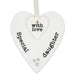 A lovely little ceramic heart keepsake to give a special Daughter as a thoughtful gift on any occasion. The piece is ceramic and consists of a larger heart with the words 'Special Daughter' and three small black hearts painted on it, the smaller ceramic heart has the words 'With Love' written in red on it, these are held together by a smart white ribbon.