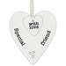 A lovely little ceramic heart keepsake to give a special Friend as a thoughtful gift on any occasion. The piece is ceramic and consists of a larger heart with the words 'Special Friend' and three small black hearts painted on it, the smaller ceramic heart has the words 'With Love' written in black on it, these are held together by a smart white ribbon.