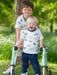 Calling all dino lovers! This short-sleeved t-shirt featuring our dino dudes print is a great choice for every cool dude out there. Made from 100% organic cotton with popper fastenings for easy changing up to and including size 3 y.