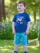 Your little monkey will be the top banana in our t-shirt! This versatile navy tee features an adorable monkey and banana placement print. Wear it with any of our shorts for a marvellous outfit that everyone will ape-solutely love! Made from 100% organic cotton with popper fastenings up to and including size 3 y.