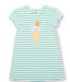 Cue the oohs and aahs when your little one sports this berry pretty design! Featuring a fun blue yarn dyed stripe and a cute sorbet appliqué, this A-line style with a coconut button keyhole back-neck opening ticks all the boxes for style and practicality.