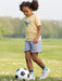 Header, kick, shoot, score… This T-Rex has all the moves! Perfect for both dino and football fans, this yellow tee will have your little one ready for an action-packed day. Pair with any of our shorts for a fun, dino-mite outfit. Made from 100% organic cotton.