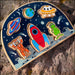 - includes an astronaut, planet, rocket, Earth, UFO and alien