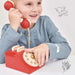 Made from natural, durable rubber-wood, painted in a striking red shade and finished with a flourish of gold paint for a touch of luxury. Featuring a ringing bell within the handset for role play scenarios. The digits and realistic spinning wheel are designed to encourage number recognition.