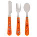 Bring the zoo to the table with this entertaining cutlery set, consisting of a knife, fork and spoon. This cutlery is sized for little hands and is patterned with animals such as the lion, zebra and giraffe, this is set on a bright orange backdrop.