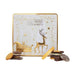 This design combines white winter trees with a golden reindeer and whimsical sleigh full of presents. Filled with Belgian chocolate biscuits.