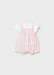 This Mayoral newborn girl’s Dungaree Set in rose tones a delicate waist detailing, combining softness with charming design. Crafted for comfort and style, it offers a sweet and practical outfit for your little one’s early wardrobe.