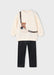 This sophisticated Mayoral girls' two-piece set features black pullover leggings paired with a jumper adorned with a charming bear handbag appliqué. Combining comfort and refined style, it’s perfect for stylish everyday wear.