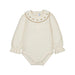 This elegant girls’ bodysuit features a delicate embroidered collar, adding a touch of refined detail to a comfortable and practical design. Perfect for everyday wear with a sophisticated finish.