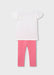 Transform your daughter's wardrobe with this refined two-piece set from Mayoral childrenswear. The soft pink leggings offer exceptional stretch and comfort for all-day wear, providing a versatile foundation that pairs effortlessly with any top. The coordinating white t-shirt features gracefully ruffled sleeves that add textural elegance, whilst a vibrant appliqué brings artistic flair and personality to the piece. Each component is thoughtfully crafted from quality fabric that prioritises durability and ease of movement through active play and everyday moments. The harmonious colour palette and complementary details create a cohesive, polished look that allows your child to express individual style with understated sophistication. This set offers an effortless way to curate contemporary, seasonally appropriate outfits with refined grace.
