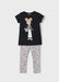 Step up your little one's wardrobe game with these Mayoral Girls Print T-shirt with matching Leggings. The eye catching t-shirt print adds a touch of whimsy colour to any outfit, while the black leggings add that finishing touch. The T-shirt and leggings set provide comfort and stretch for all-day wear.