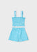 Elevate your daughter's warm-weather collection with this versatile two-piece set from Mayoral childrenswear. The coordinated ensemble pairs a fitted crop top with tailored shorts, both rendered in a classic gingham pattern that exudes timeless charm. Practical two-pocket shorts offer functional convenience, whilst the cropped silhouette creates a contemporary, polished aesthetic. Constructed from durable, quality fabric, this set prioritises comfort and ease of movement for active days and casual adventures alike. The refined gingham design transitions effortlessly from everyday wear to more curated occasions, making it an essential addition to any young wardrobe. The thoughtful tailoring and coordinated styling allow your child to express individual flair with understated sophistication