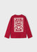 This stylish Mayoral girls’ long-sleeve red T-shirt features a charming "I Love You Berry Much" motif, blending playful sentiment with a sophisticated design for a comfortable and heartfelt everyday look.