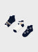 Elevate everyday essentials with this practical three-piece sock set from Mayoral childrenswear. Rendered in a versatile navy tone, each pair features a dynamic football print that celebrates athletic passion whilst maintaining refined simplicity. The coordinated set ensures your son always has a fresh pair on hand, perfect for active days and sports pursuits. Crafted from quality, durable fabric, these socks prioritise comfort and breathability throughout the day. The thoughtful design detail adds personality to a wardrobe staple, making them equally suited to casual wear and more structured occasions. The neutral colour palette coordinates effortlessly with any bottoms, offering practical versatility. Perfect for expressing individual style through subtle detail, this set provides reliable comfort and contemporary appeal for the discerning young wearer.