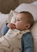 This Mayoral newborn boy’s dungaree set features a playful jungle print in blue and cream tones. Designed for comfort and style, the set offers easy dressing and a charming look, perfect for your baby’s everyday adventures.