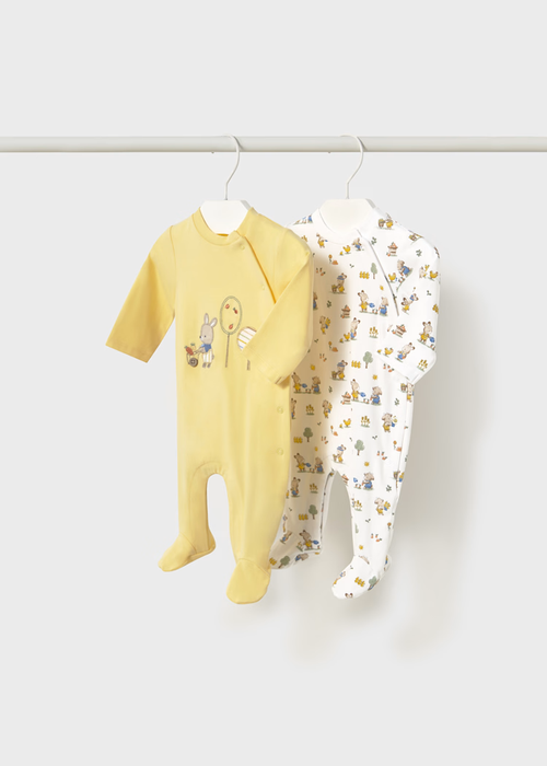 Introducing our beautiful and playful Romper suits for newborn girls! The first features a white and peach stripe design with a charmingly detailed collar, while the second is peach coloured with star detailing. Both have east access poppers. Perfect for adding some whimsy to your little one's wardrobe!