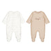 This Mayoral newborn boys’ two-piece set features soy-coloured onesies in tan and cream, each adorned with a charming train design pattern. Crafted for comfort and ease, this set provides a soft, stylish option perfect for your baby’s everyday wear.