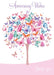 This pretty card features a charming illustrations from Nigel Quiney depicting a beautiful tree made out of vibrant multicoloured butterflies. The words 'Anniversary Wishes just for you' are written across the card. Paired with a stylish envelope, they bring happiness to every special occasion.