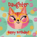 This sophisticated birthday card from Nigel Quiney features a large, smiling cat face wearing glasses, set against soft pastel tones. Its charming and elegant design makes it a delightful way to celebrate your daughter’s special day.