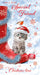 This elegant Christmas card from Nigel Quiney features a charming kitten wearing a Santa hat, nestled beside a red Wellington boot with a robin perched nearby. Perfect for a special friend, it combines festive warmth with refined artistry to convey heartfelt holiday wishes.