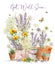 This elegant get well soon card from Nigel Quiney features a colourful garden rendered in refined tones, complemented by vibrant yet tasteful lettering. Its sophisticated design offers a graceful way to send warm wishes for a speedy recovery.