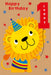 This elegant birthday card from Nigel Quiney features a joyful lion wearing a striped top and holding a balloon, perfect for celebrating a first birthday. Its refined design combines playful charm with sophistication to mark this special occasion.