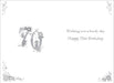 This pretty card features a modern illustrations from Nigel Quiney depicting a pretty floral birthday card with vibrant detailing. The words 'Happy 70th Birthday wishing you a lovely day' is written across the card. Paired with a stylish envelope, they bring happiness to every special occasion.