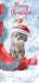 This sophisticated Christmas gift wallet from Nigel Quiney features a cute cat wearing a Santa hat beside a vibrant red Wellington boot in a charming winter scene. Ideal for presenting a monetary gift, it combines festive warmth with elegant design.