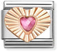 Nomination Classic Gold Plates Diamond Cut Heart With Pink Stone Charm