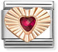 Nomination Classic Gold Plates Diamond Cut Heart With Red Stone Charm