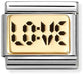 This Nomination classic gold charm features deep black lettering spelling out "love" making it an ideal gift to express affection for a loved one. Its elegant design combines meaningful sentiment with timeless style, perfect for celebrating close bonds and cherished relationships.