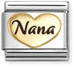 This classic gold charm from Nomination showcases a polished heart engraved with the word "Nana" in elegant black lettering. Its timeless design makes it a refined and meaningful gift, perfectly suited to celebrate the special bond with a beloved Nana.