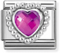 Nomination Classic Silver Faceted Beaded Heart Shaped Fuchsia Stone Charm