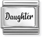 Surprise your daughter with the gift of love and style with our Original Nomination Classic Link. Crafted in Italy with stainless steel and sterling silver, it features the word "Daughter" in rich black engraved enamel text. Let her know she's always in your heart with this elegant and timeless piece.