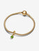 This 14k gold-plated dangle charm is made up of a triple knotted circle that resembles an infinity sign. Carrying a faceted spring green man-made crystal, wear yours as a symbol of forever.