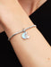 Give them the moon. This sterling silver double dangle charm features one crescent moon crafted in moonstone iridescent glass, and another engraved with a heartfelt message. A radiant reminder of love’s infinite glow.