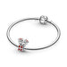 The Disney and Minnie Pandora Mickey gift box charm, designed for women, is crafted from 925 sterling silver. Both characters are adorned with Christmas hats, highlighted with red enamel accents on the gift and hats. The mice feature ribbed eyes and eyelashes; Mickey wears a scarf and holds Minnie on his shoulder. The gift box is tied with a bow, and Minnie has her right foot slightly raised. The Pandora logo is engraved on the back of Minnie's charm, while the Disney logo is on the back of Mickey's head. Inspired by the joy of Christmas, this charm celebrates the holiday season together.