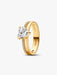 Love boldly. This 14k gold-plated ring features a unique design with two connected bands: one plain polished band and the other set with pavé on the front half. At the centre sits a sparkling heart-shaped cubic zirconia, for an eye-catching statement.
