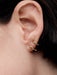 The Double Huggie Hoop Earrings offer twice the impact in a single style. Each 14k gold-plated earring features one inner hoop and one slightly smaller outer ear-cuff connected by a pin. The inner hoop has a click closure while the outer hoop is open. The inner hoop should be positioned closer to the face with the connecting pin behind the earlobe. The design is mirrored, differentiating between right and left earrings. Get the double huggie effect in a single stylish set.