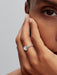 All heart, all sparkle. Our sterling silver ring features a raised man-made crystal heart in white with a pavé halo and half-pavé band. A perfectly stackable piece inspired by love.