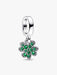 Channel your lucky side. This sterling silver dangle charm is inspired by the ultimate symbol of good fortune, the four-leaf clover. The sparkling green leaves are shaped as half hearts, and each leaf holds symbolism of its own: bringing faith, hope and love into the mix.