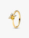 Get your style buzzing. Our 14k gold-plated ring features a vibrant yellow and clear stone bee with mixed cuts and settings. Sweet sparkle fit for a queen bee.
